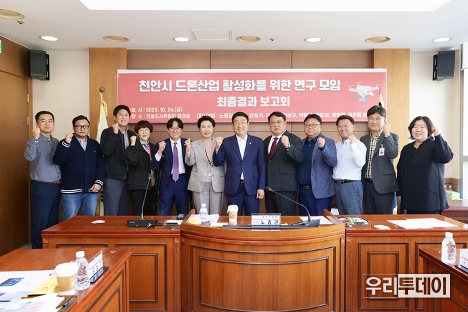 우리투데이 이동현 기자 | 천안시의회 의원연구모임 ‘드론산업 활성화를 위한 연구모임(대표 노종관 의원)’은 지난 24일 천안시의회 건설도시위원회 회의실에서 최종결과보고회를 개최하고, 7개월간의 연구성과와 향후 정책 추진 방향을 공유했다.