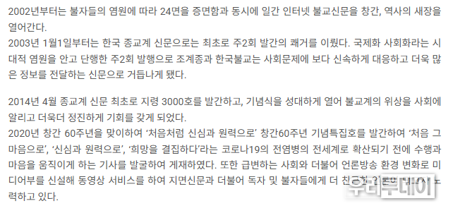 한편 불교신문측에서는 언론사 연혁에 2002년에 '인터넷 불교신문'을 창간했다고 밝혔지만 결국