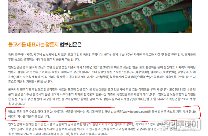 우리투데이 이동현 기자 | 불교계를 대표하는 대한불교조계종이 운영하는 불교신문에 이어 특정 종단이나 사찰, 사주에 소속되어 있지 않은 불교 유일의 독립언론으로 자부하는 법보신문마저 2026년 4월 19일 문화체육관광부가 운영하는 '정기간행물 등록관리시스템'에 따르면 '인터넷신문 미등록'으로 밝혀져 충격을 주고 있다.