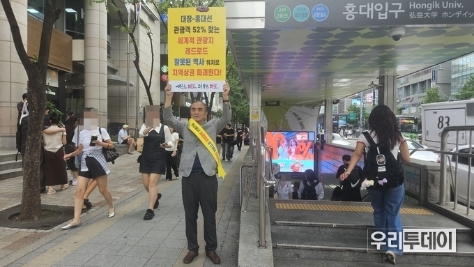 우리투데이 이승일 기자 | 백남환 마포구의회 의장은 8월 18일 오후 5시, 홍대입구역 인근 ‘레드로드’ 구간에서 대장~홍대 광역철도 홍대입구역(111정거장) 역사 위치 변경을 촉구하는 1인 시위 릴레이의 두번째 주자로 나섰다.