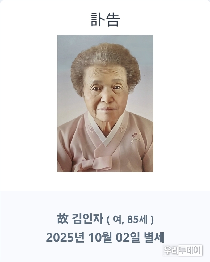 우리투데이 이동현 기자 | 故 김인자씨가 2025년 10월 2일 별세했다.