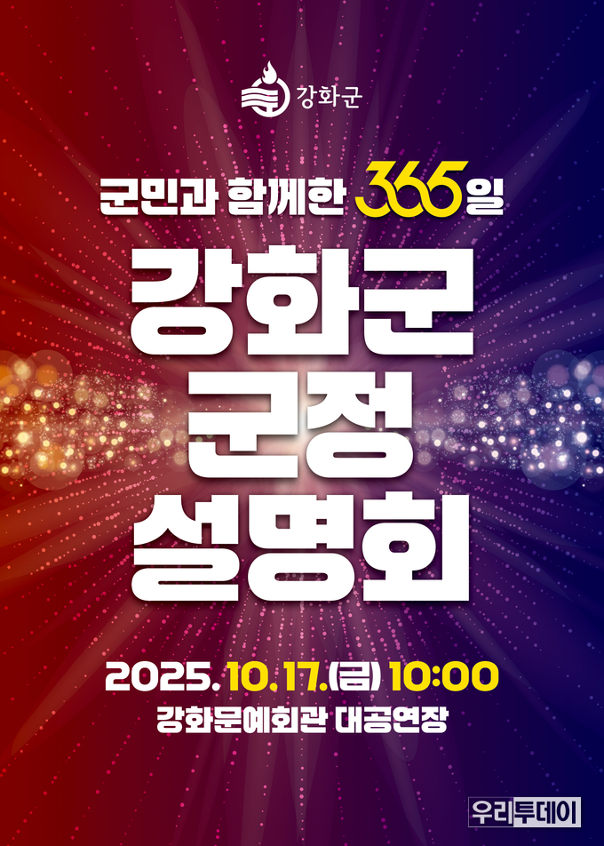우리투데이 이동현 기자 |  강화군(군수 박용철)은 오는 10월 17일 강화문예회관에서 “군민과 함께한 365일, 강화군 군정 설명회”를 개최한다.