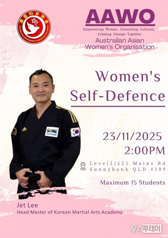 우리투데이 이동현 기자 | 여성들을 대상으로 한 성범죄 예방과 안전 의식이 그 어느 때보다 중요한 가운데, Australian Asian Women’s Organisation(호주아시안여성단체)의 요청으로 Korean Martial Arts Academy (이강웅 관장)이 실전 호신술 교육 프로그램을 진행하며 큰 호응을 얻었다.