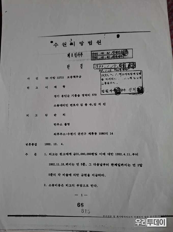 69세 김순희씨는 이에 대해 "이번 재판은 결국 수원지방법원과 수원고등법원을 벗어나 서울 대법원에서 최종적으로 판결이 나와야 할것이다"라며, "이번 재판에는 국선 변호사가 아니라 사선 변호사를 통해 구체적인 증거를 통해 '진실'을 밝혀내겠다"고 강한 의지를 표명했다.