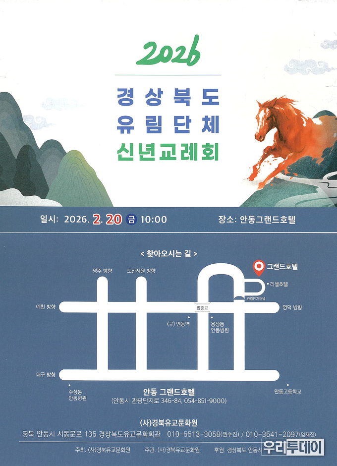 우리투데이 이동현 기자 | (사)경북유교문화원은 2월 20일 안동시에 위치한 안동그랜드호텔에서 '신년교례회' 를 개최한다고 밝혔다.