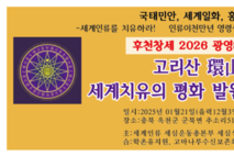 우리투데이 이동현 기자 | 충북 옥천군 군북면 추소리 513에 주소를 둔 황룡사에서는 2026년 1월 21일(음력 12월 3일) 오전 10시 10분에 산신천제 및 단황전 현판식을 개최했다. 이날 세계인류 세심운동총본부 세심성재원과 황룡사가 주최하고, 우리투데이, 학촌유치원, 고마나루수신보존회가 후원한 후천창세 2026 광영SG영성시대를 맞이 고리산 환산(環山) 583m 세계치유의 평화 발원 산신천명대천례를 통해 참석자들은 국태민안과 세계일화, 홍익세상, 제세이화를 통해 셰계인류가 치유되고, 인류 이천만년 영령성지가 개화되길 기원했다. 우리투데이 이승일 전 대표이사는 "2026년 1월 21일은 음력으로는 12월 3일인 그야말로 뜻깊은 날짜이고, 이날 천안에서는 우리투데이 장기택 회장 취임식과 충북 옥천군 황룡사에서는 산신천제 및 단황전 현판식이 거행되는 의미있는 일이 동시에 진행됐다"며, "올해 2026년을 시작하는 1월부터 뭔가 새로운 기운이 솟아오름을 느낀다"고 전했다. Hwangnyongsa Temple, located at 413 Chuso-ri, Gunbuk-myeon, Okcheon-gun, Chungcheongbuk-do, held a Mounta