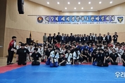 우리투데이 이동현 기자 | 제9회 세계 경찰무도 한마음대회가 10월 26일 대덕대학교 체육관에서는 쌍검투, 품새, 스피드발차기와 3D영상사격장에서는 사격 경기가 벌어지는 등 다채로운 모습을 보여주며 성황리에 끝냈다. 쌍검투는 무협이나 게임에서 주로 사용되는 쌍수(두 자루의 검) 무기를 사용하는 전투 스타일을 의미하며 주로 빠른 공격과 연속 공격, 다양한 무기술 활용이 특징인데 무거운 무기나 쌍절곤 등과는 달리, 쌍검투는 가볍고 연속적인 동작이 요구되어 적응이 쉽지 않다는 의견도 있는데 이날 초.중.고등학생들의 진지한 모습으로 인상 깊었다. 체육관에서의 쌍검투가 진행되는 가운데 3D영상사격장에서는 동시에 사격 경기가 벌어졌는데 성인도 어려운 영상 사격을 초.중.고등학생들이 해내는 모습에 뒤에서 지켜보는 학부모들은 한발 한발에 긴장하는 모습을 보이기도 했다. 이날 제9회 세계 경찰무도 한마음대회를 준비한 대한민국 경찰무도협회 장현이 회장은 "오늘은 일요일임에도 불구하고 많은 대회 관계자들의 도움으로 무사히 성대하게 대회를 마치게 됐다"라며, "대회를 위해 자기 일처럼 애써주신 모든 분들에게 감사를 드린다"고 소감을 밝혔다. 더불어민주당 박정현 국회의원(대전 대덕