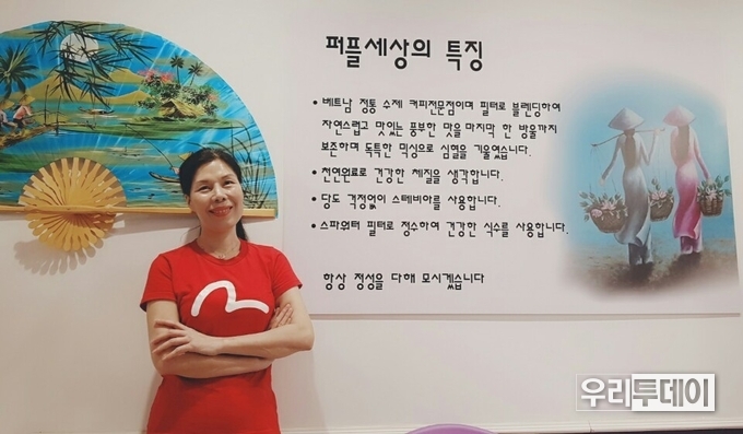 우리투데이 이승일 기자 | 경기도 부천역에서 전화국사거리쪽으로 가다보면 자주색 간판의 '퍼플세상'이란 정통 베트남커피 전문점을 만나볼수가 있다. 그간 '베트남'이라면 베트남쌀국수만을 다루는 음식점에 익숙했는데, 이곳 '퍼플세상'은 정통 베트남커피 전문점으로 현재 전국적으로 5개 체인점을 오픈했다고 한다.