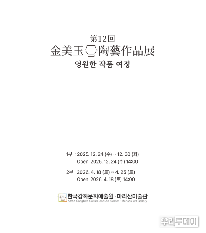 우리투데이 아동현기자 | 강화군 화도면에 위치한 한국강화문화예술원.마리산미술관에서 12월 24~30일까지 제12회 김미옥 도예작품전이 개최되고 있다.