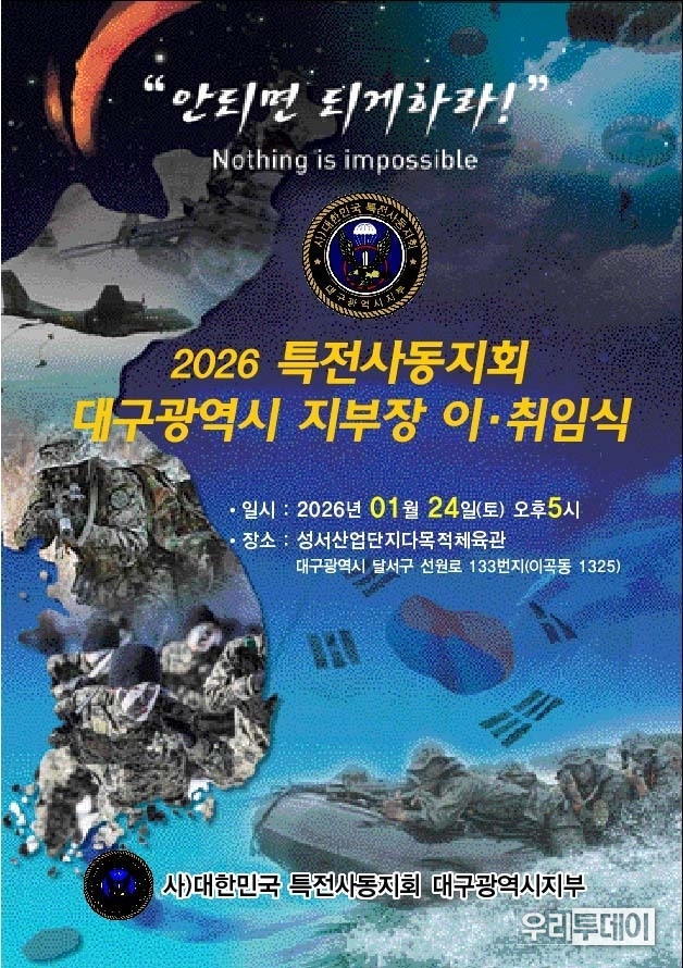 이번에 2026년 1월 24일 세계최강의 특수부대예비역 단체인 대한민국특전사동지회 대구광역시지부 제12대 지부장으로 취임한 이진규 입니다.