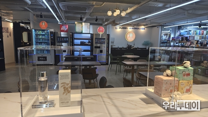 환전 손님들이 편안하게 쉬면서 음료수나 커피를 마실수 있는 휴게시설은 마치 커피샆으로 착각할 정도였고, 그 옆에는 젊은층 환전손님을 위해 장신구 등을 착용하고 사진을 찍는 공간, K스타들 관련된 굿즈를 파는 서점.문구형태의 판매점 등을 갖춘 곳이다.
