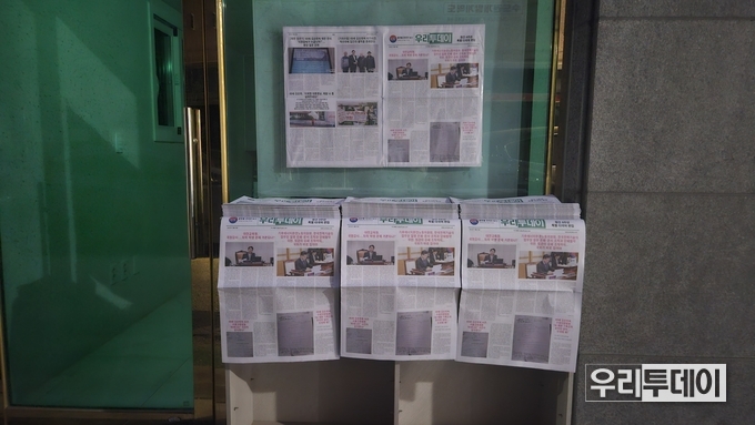 우리투데이 이동현 기자 | 경기도 수원시 정조로에 위치한 우리투데이 언론사 사무실 유리창에 지난주 토요일(11월 15일)에 부착된 지면신문과 비치해둔 지면신문이 11월 17일 확인 결과 모두 없어진 사건이 발생해 과연 누가 지면신문을 걷어가고 뜯었는지에 관해 주목받고 있다.