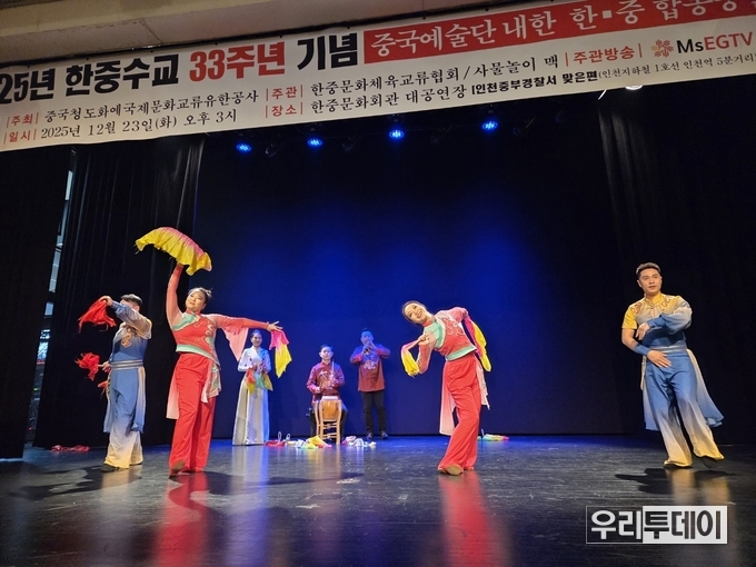우리투데이 이동현 기자 | 중국청도화에국제문화교류유한공사가 주최하고, 한중문화체육교류협회와 사물놀이 맥이 주관한 2025년 한중수교 33주년 기념 중국예술단 내한 한중 합동공연이 2025년 12월 23일 한중문화회관 대공연장에서 개최됐다.