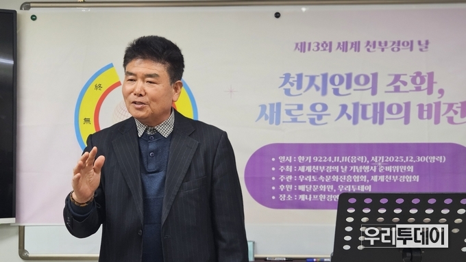 우리투데이 이동현 기자 | 세계천부경의날 기념행사 준비위원회(사무총장 홍병우)는 2025년 12월 30일 11시 11분에 맞춰 원광중앙신협 3층 케냐프환경연합에서 '제13회 세계천부경의 날' 행사를 개최했다.
