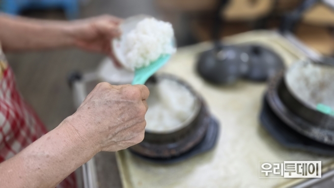 밥공기 가득하게 밥을 담고 즉석솥에는 물을 부어 누룽지로 먹을수 있게 해준다.