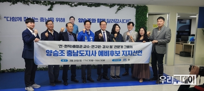 3월 29일 양승조 충남도지사 예비후보 캠프에 따르면 전날(28일) 충청권 교수·연구원·강사·전문가 85명이 더불어민주당 양승조 충남도지사 예비후보에 대한 지지를 선언했다고 밝혔다.