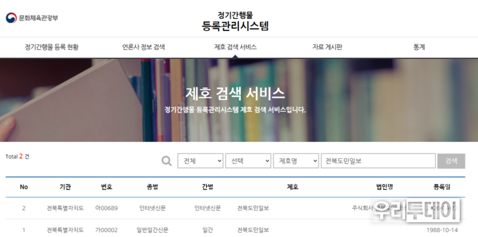 우리투데이 이동현 기자 | 전북특별자치도에 현재까지 등록된 정기간행물은 총 476개 언론사로 그중에 기타간행물, 잡지, 순수하게 인터넷신문만을 등록한 언론사를 제외하고 지면신문(일간지/주간지)로 등록되어 있으나, 아직까지 '인터넷신문'을 등록하지 않은 언론사들이 대부분이다.
