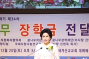 우리투데이 이동현 기자 | 꿈나무 장학재단(이사장 신현옥 목사)은 2025년 12월 20일 오후 3시, 경기도 평택시 송탄로에 위치한 시온선교교회에서 ‘2025년도 2학기 제34차 꿈나무 장학금 전달식’을 개최했다. 이날 전달식은 한중교직원복지협의회·꿈나무작은도서관·꿈나무장학재단이 공동 주최·주관했으며, 크리스마스 및 연말을 맞아 어려운 환경 속에서도 꿈을 키워가는 학생들에게 희망과 용기의 메시지를 전하는 뜻깊은 자리로 마련됐다. 최동순 목사의 사회로 진행된 이번 장학금 전달식은 국민의례와 애국가 제창, 소프라노 김현애 목사와 명창 안소라의 축하송이 이어졌으며 꿈나무 장학재단 이사장을 맡고 있는 신현옥 목사는 환영 인사를 통해 “크리스마스와 연말이 되면 어렵게 살아가는 이웃을 생각하며 잠을 이루지 못한다. 항상 주고도 더 주지 못해 늘 마음이 아쉽다”며, “작은 나눔이지만 함께할 수 있음에 감사하고, 하나님의 심정을 느끼며 은혜 가운데 살아갈 수 있어 행복하다”고 말해 참석자들을 숙연하게 만들었다. 이날 총 32명에 대해 장학금 전달식이 있었으며 이평강 학생 우수상(20만 원)을 비롯해 학생회장 특별상(강송권 50만 원), 학생 반장 특별상(50만 원) 등